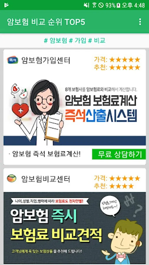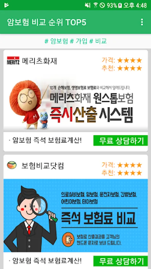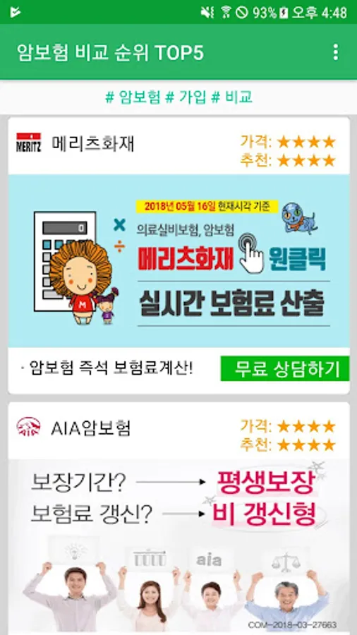 • 암보험 가입 순위를 한눈에 확인할수 있습니다.