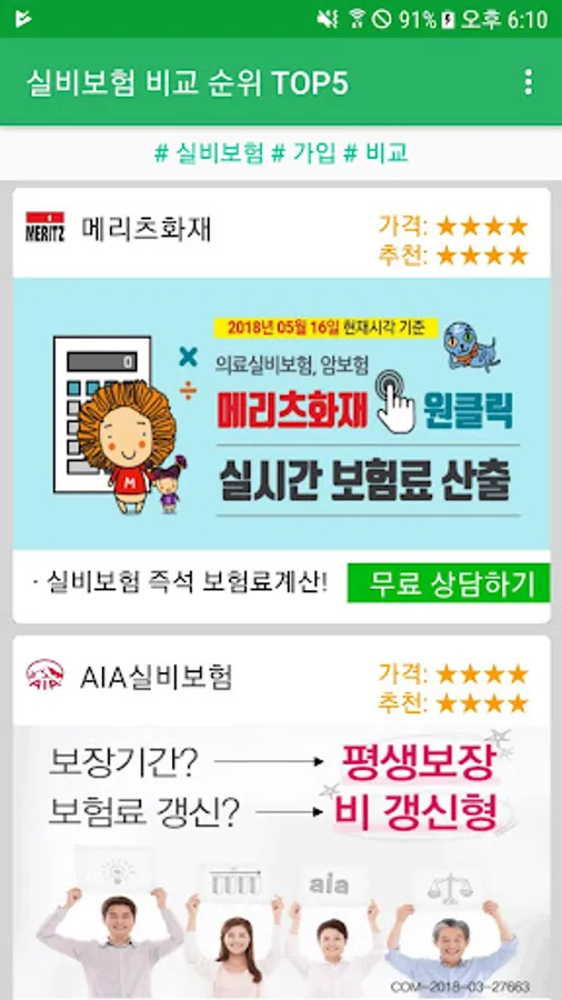 • 의료실비보험 가입 순위를 한눈에 확인할수 있습니다.