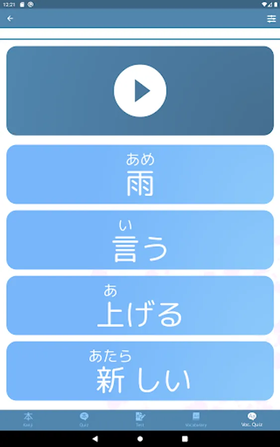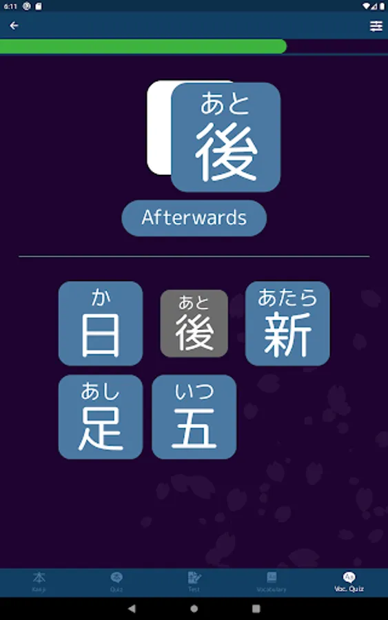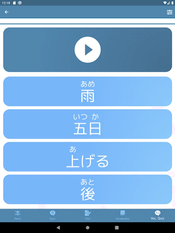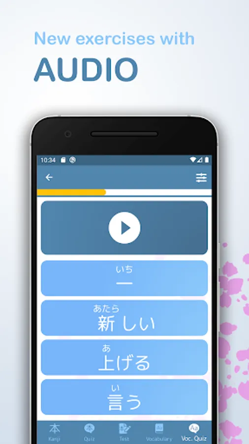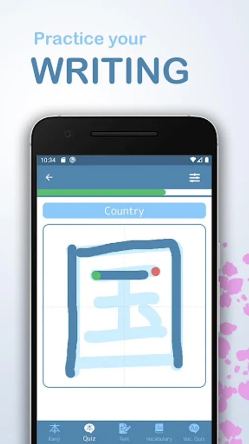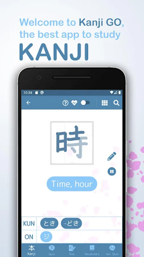 Kanji GO provides a fun and easy way to learn Japanese Kanji, from JLPT N5 to JLPT N1! Not ready for Kanji yet? Don't worry! You can start by learning Hiragana and Katakana first!