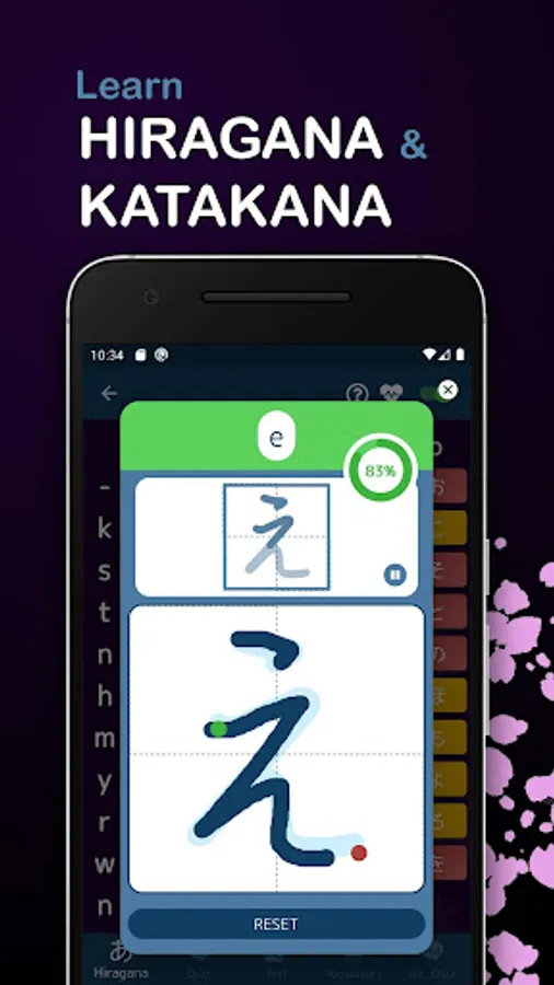 ✓ A paced progression system to learn new Kanjis, Hiragana and Katakana as you go.
