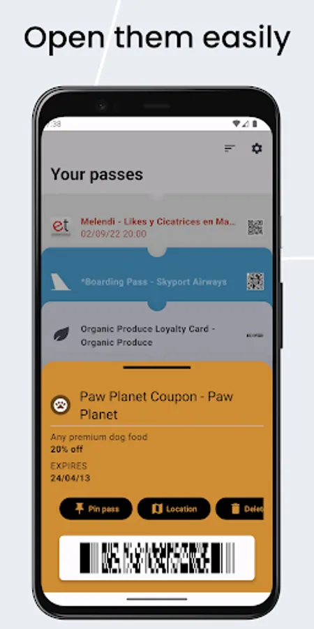 Import and handle all your passbooks, so you can use them to get promotions, boarding pass for your flights/trains, tickets for concerts, etc. You can quickly see all the info around your passbooks, add to calendar, pin the important ones, etc.