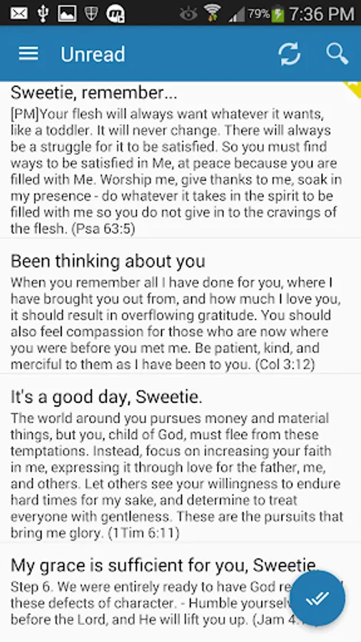 The App comes with one set of messages for all Android Users. But if you register, you can get your own unique personalized messages, and select your own categories (including Celebrate Recovery Christian 12 Step messages), times you receive messages, and even send yourself reminder messages.