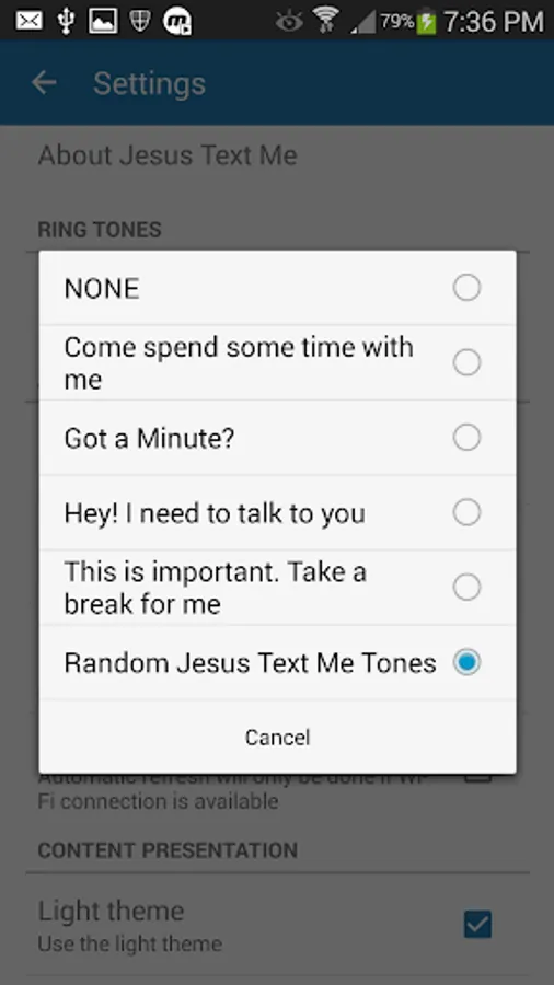 Watch the quick instruction video above to see how and where to add your messages to the app (or go to http://JesusTextMe.com/apps_mobile.php#android from your phone).