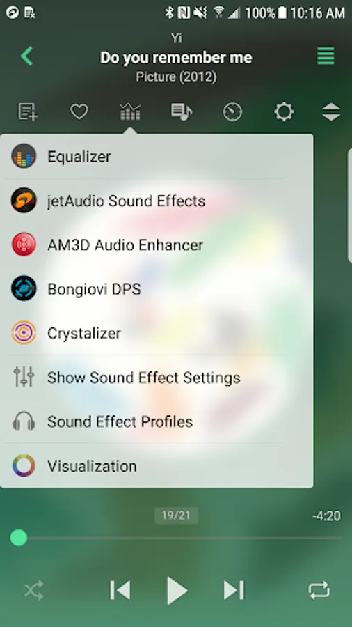 It plays almost any type of digital music files you have (.wav, .mp3, .ogg, .flac, .m4a, .mpc, .tta, .wv, .ape, .mod, .spx, .opus, .wma* and more) and, it provides a very high quality sound with various effects and enhancements such as Wide, Reverb, X-Bass.