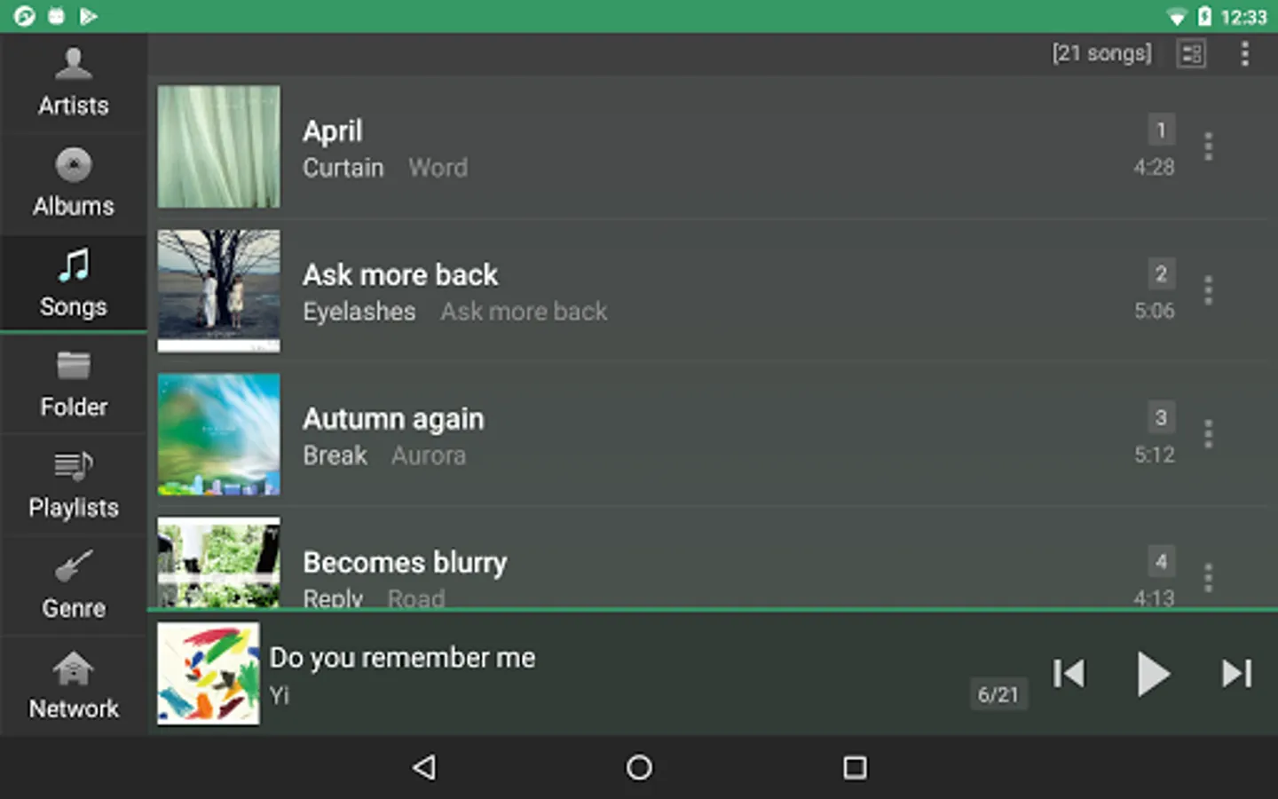 * Browser and play music by artists, albums, songs, playlists, genres and folders