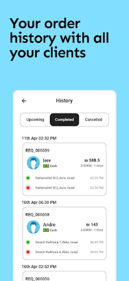 You can also receive customer orders on a specific date. These orders are visible to all drivers at once, so whoever takes the order first moves it.