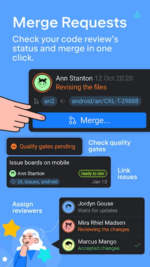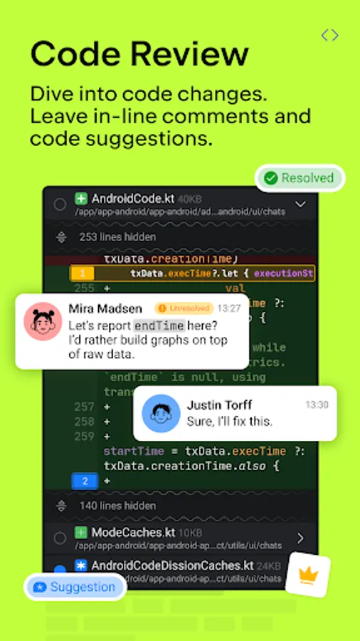 The Space mobile app is a companion app to Space, a complete software development platform for your team. Manage your entire software development process, from hosting Git repositories, performing advanced code reviews, automating your CI/CD pipeline, and publishing packages, to managing issues, documents, and chats – all in one place and integrated with JetBrains IDEs.