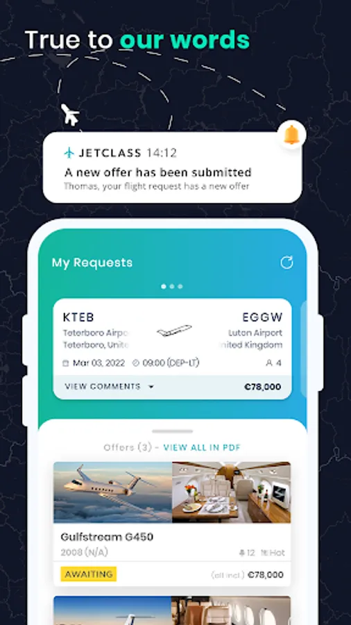 JetClass is the first private jet charter sourcing and booking platform that provides a direct interface with the world’s leading operators, empowering customers to source and book a jet within 30 minutes. Driven by digitization and a desire to challenge the status quo, we continue to build on our achievements, furthering our quest to make private jets as easy to book as a conventional airline ticket.