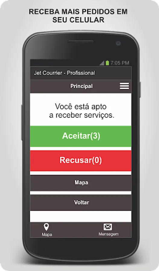 This application receives the services requested on this site: https://jetcourrier.com.br We operate in central regions, neighborhoods and all over São Paulo., Brazil. For you to receive the services you need to install the application, register, then wait for our team to activate your registration.