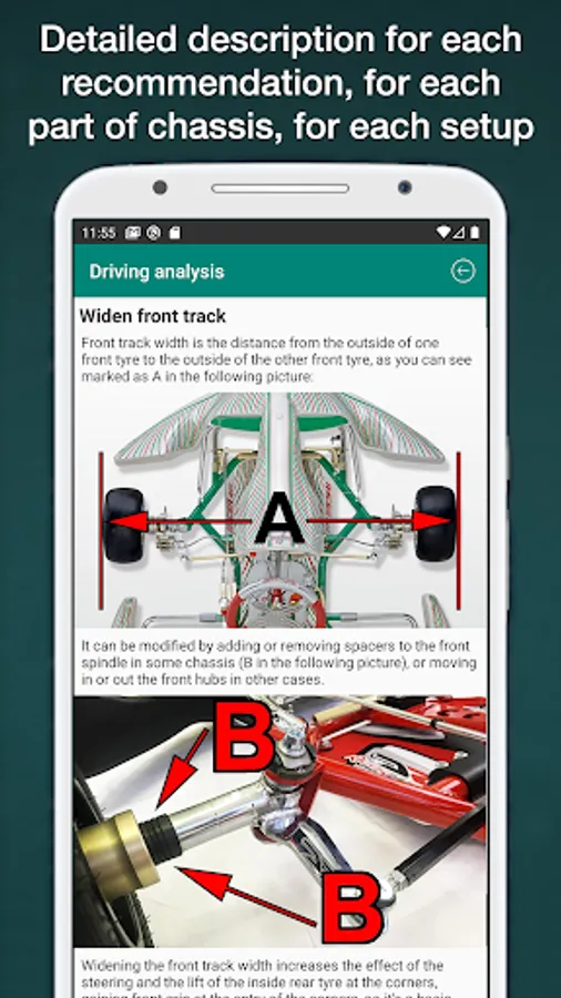 The app is valid for all types of karts and for all karting classes. It's usefull for experienced or novice drivers. For experienced it'll be a second opinion about what's wrong with the chassis setup, and for novices it will teach them the secrets of the chassis adjustments