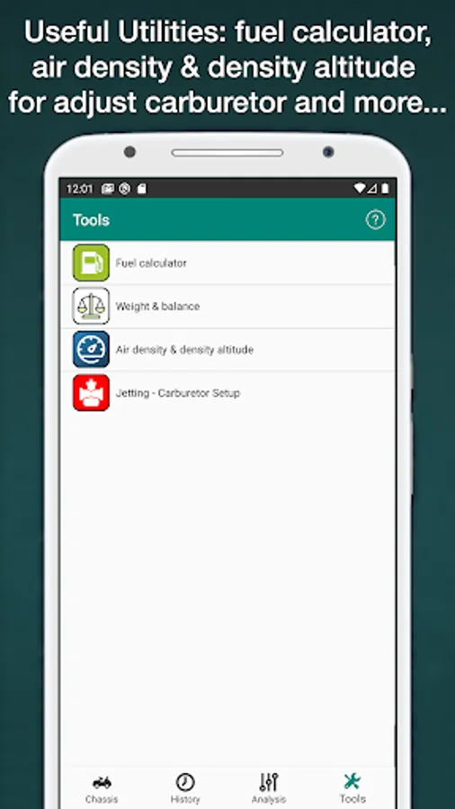 • Tools: you can find useful karting utilities. Fuel calculator for perfect fuel mixing. Weight and balance to get the perfect go-kart weight distribution. Air density and density altitude for carburetor setup