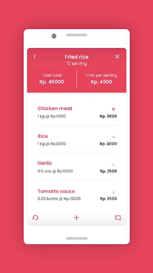 Estimating how many ingredients and costs are needed for each food recipe is very easy and fast. There is no need to count materials one by one or record them on paper which may be lost.
