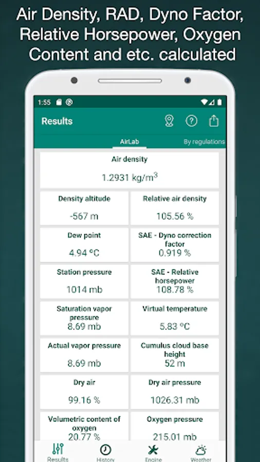 This app can obtain automatically the position and altitude to get the temperature, pressure and humidity from the nearest weather station thought internet. Application can run without GPS, WiFi and internet, in this case user has to enter weather data manually.
