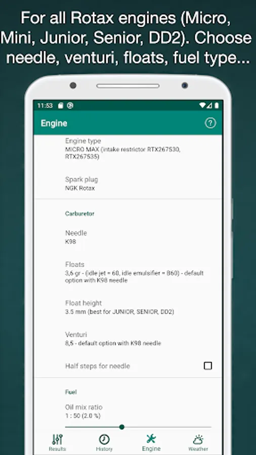 For Rotax Max EVO Engine please try our other app: Jetting Rotax Max EVO Kart.