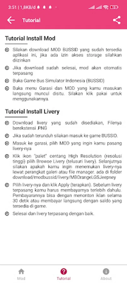 - Complete, There are dozens of BUSSID MODs and Livery that you can download in this application and will be added all the time.
