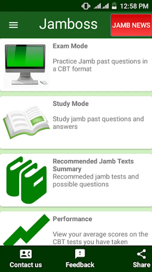 Jamboss provides students with all the past questions they will need in a CBT interface similar to that of Jamb CBT exams.