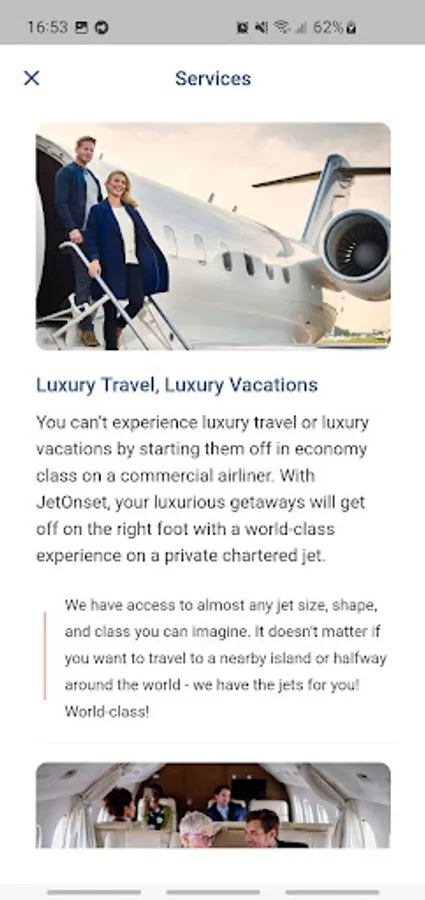 The smart private jet charter in your pocket! JetOnset takes private flights to the next level, making the process as smooth and easy as possible. Fly different to over 30,000 cities, grab empty leg options, and reserve entire aircraft with sizes from small propeller driven puddle-hoppers to globe-trotting full-size commercial aircraft!