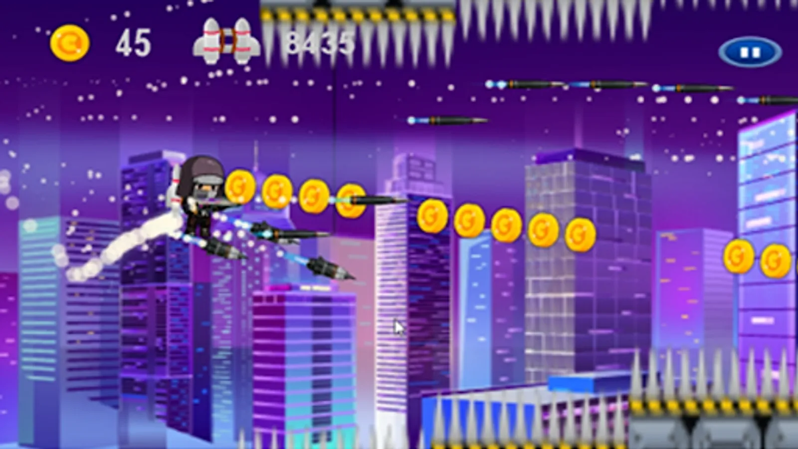 Shooter Sidescroller Game takes you back to the future where mech warriors from battle star wants to conquer the earth and you must shoot’em up to save the world! Be the ultimate rocketman and enjoy great adventure as you defeat these nefarious mech warriors. Do you have what it takes to be a super hero?