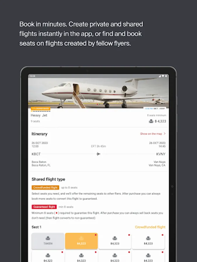 Book a seat on exiting shared flights around the world. All at the most competitive prices in the marketplace.