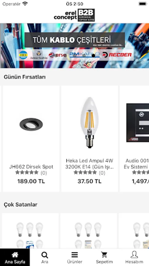 With the ErelB2b Mobile application, you can purchase bulb types, indoor lighting, outdoor lighting, switch - socket models, store products, decorative lighting, cable types, electrical materials, smart home systems products.