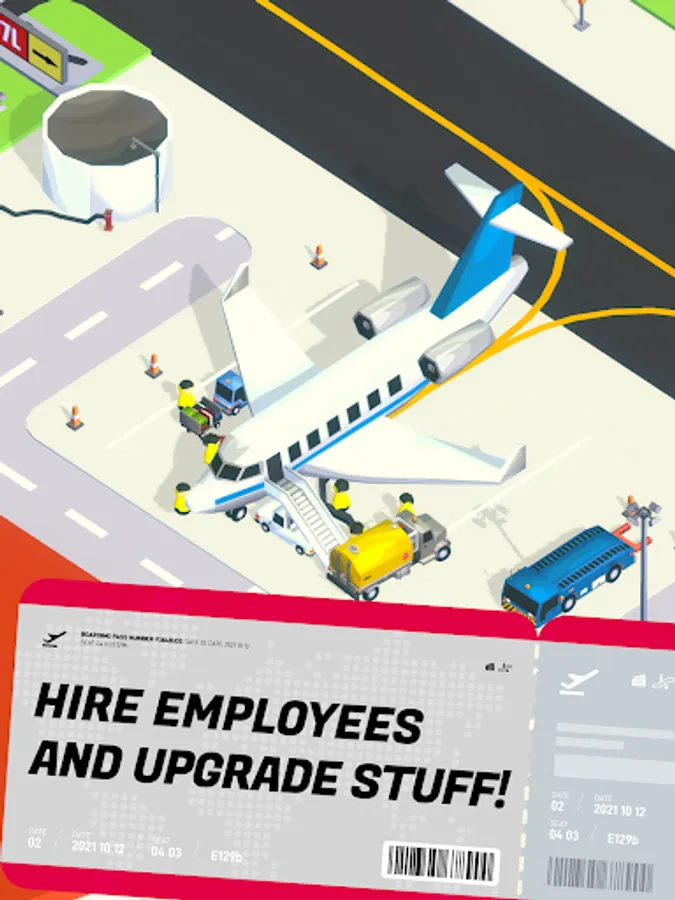 Develop technologies, upgrade boosters and make your handling facilities working more efficient. Increase capabilities of fuel tankers, baggage carts, air control tower and parking! All upgrades are based on incremental mechanics so you will keep constant progress.