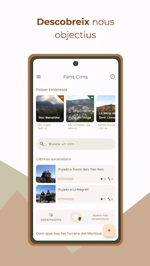 Whether you're just starting out in hiking or you're already an expert, Making Peaks helps you discover your next goals and keep track of your 100 peaks challenge mountain exploits. Be proud of them all! With Fent Cims you will always have them ready to remember whenever you want.