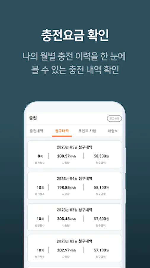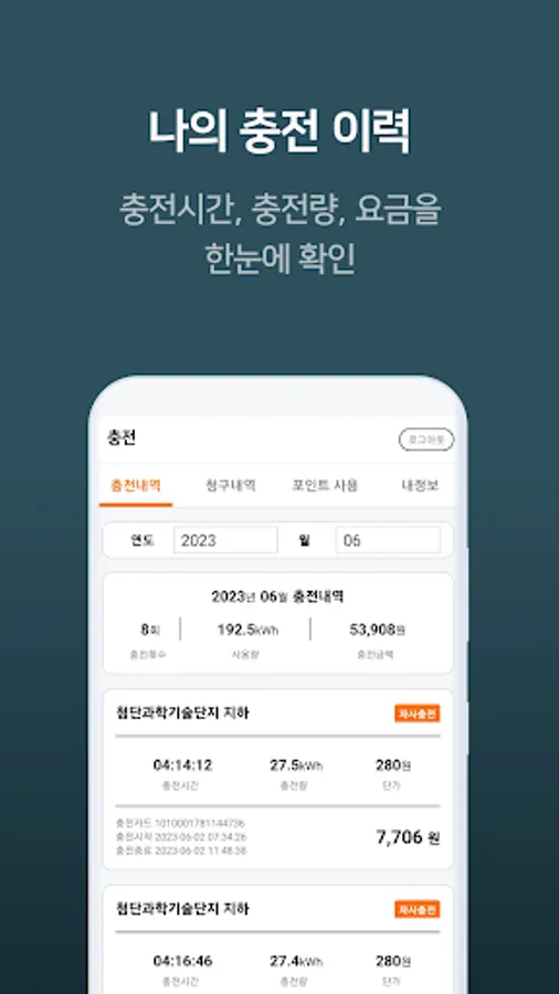 Management of True Charger Jeju charger usage history and roaming charger usage history