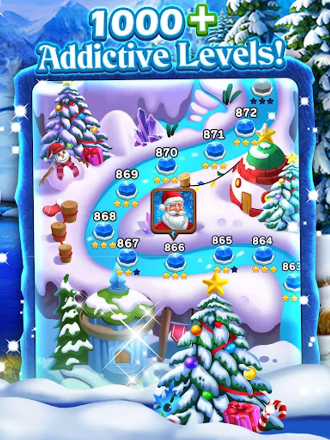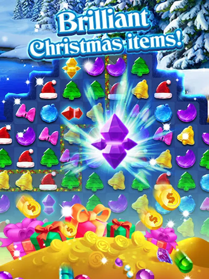 Christmas Frozen Swap is a funny match 3 Puzzle game with 1200 challenging levels, and just in time for the holidays. You will experience the adventure with Christmas Frozen Swap in a snow world of Christmas trees, Santa's hats, Christmas bells and other cute Christmas Pieces.