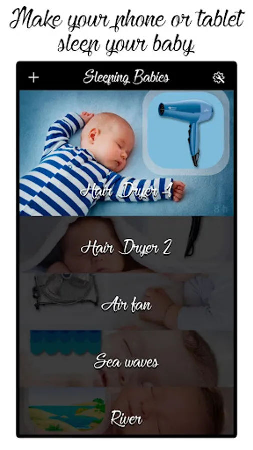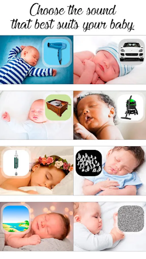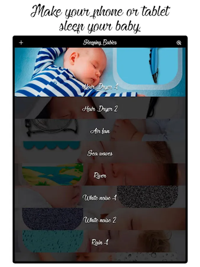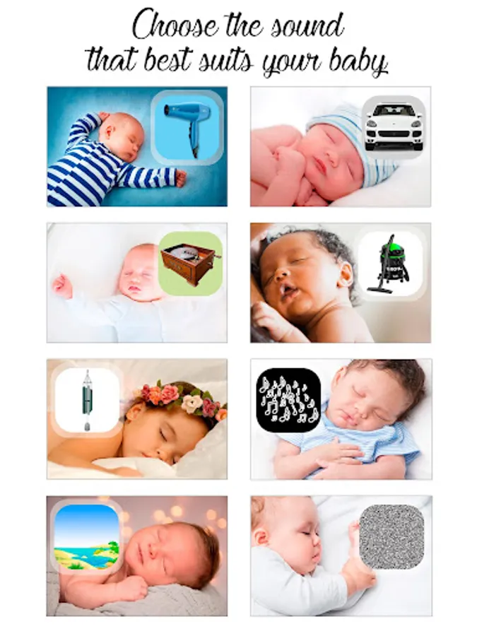 With this app you will have it easy. It is proven that white sounds help babies to sleep.