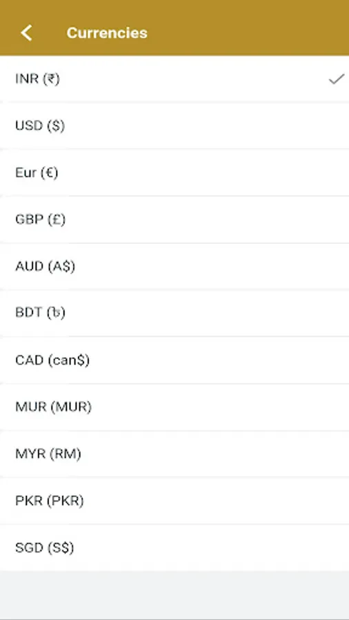 INR, USD, EURO, GBP, MYR, CAD, AUD, SGD or AED.