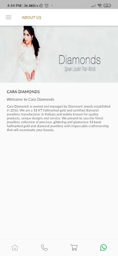 Cara Diamonds is owned and managed by Diamount Jewels established in 2016. We are a 18 KT hallmarked gold and certified diamond jewellery manufacturer in Kolkata and widely known for quality products, unique designs and service. We present to you the finest jewellery collection of precious, glittering and glamorous 18 karat hallmarked gold and diamond jewellery with impeccable craftsmanship that will accentuate your beauty.