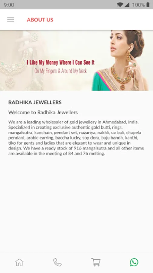 We are a leading wholesaler of gold jewellery in Ahmedabad, India. Specialized in creating exclusive authentic gold butti, rings, mangalsutra, kanchain, pendant set, nazariya, nakhli, uv bali, chapela pendant, arabic earring, baccha lucky, soy dora, baju bandh, kanthi, tiko for gents and ladies that are elegant to wear and unique in design. We have a ready stock of 916 mangalsutra and all other items are available in the meeting of 84 and 76 melting.
