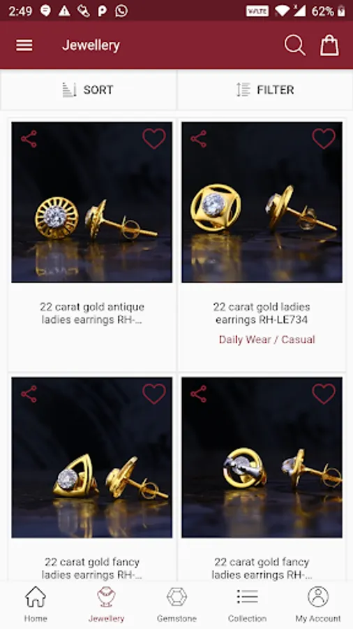 Explore our latest design collection of jewelry such as Gold Ring, Earrings, Bracelet, Mala, Chain, Necklace online. Our devotion is towards offering top quality products, reliable services and customer satisfaction.