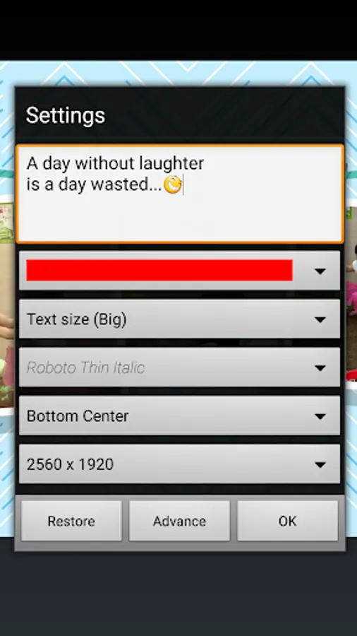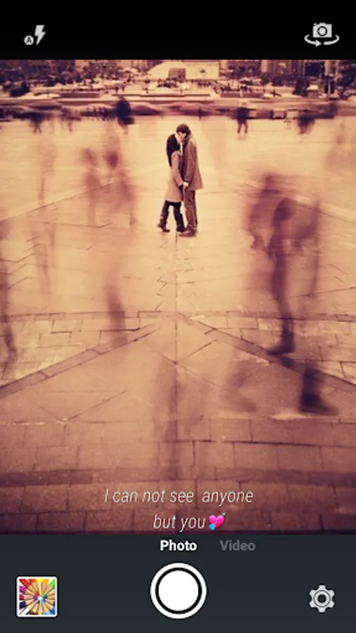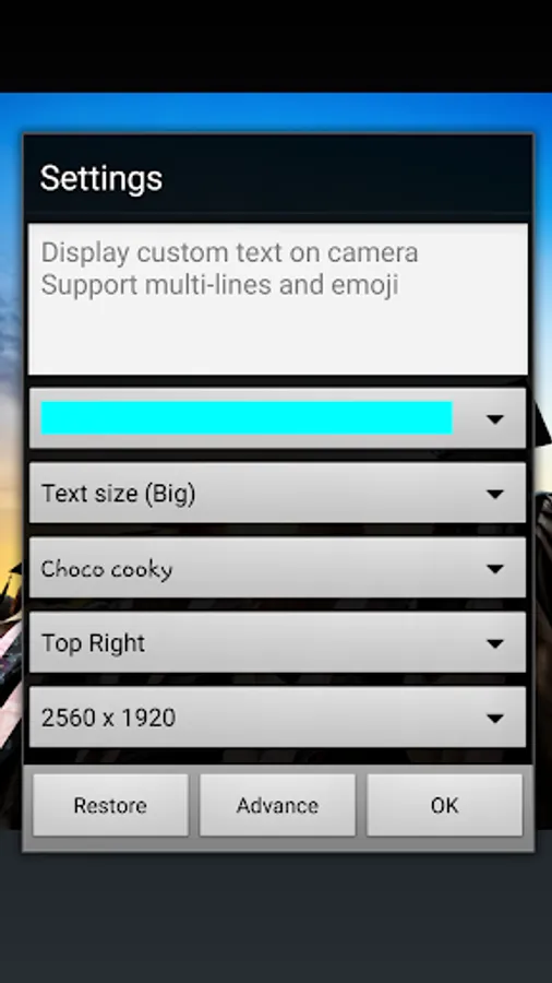 Camera Text Add-on is a new way to express yourself. Add real-time text and emoji watermark directly to your camera! See text and effects applied Live before you take your photo and video!