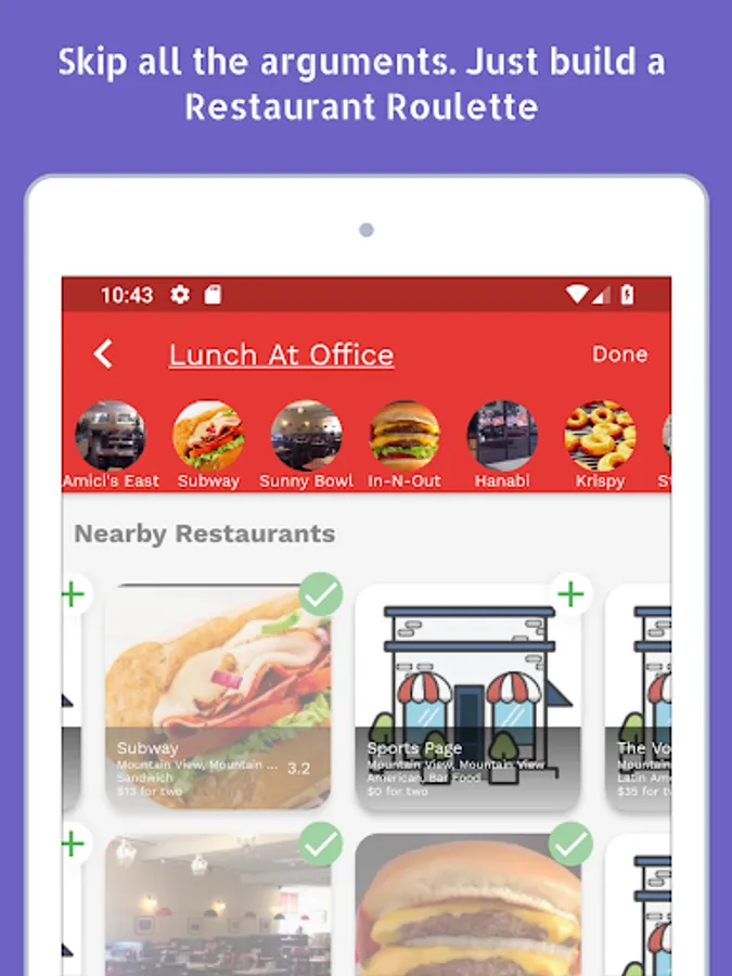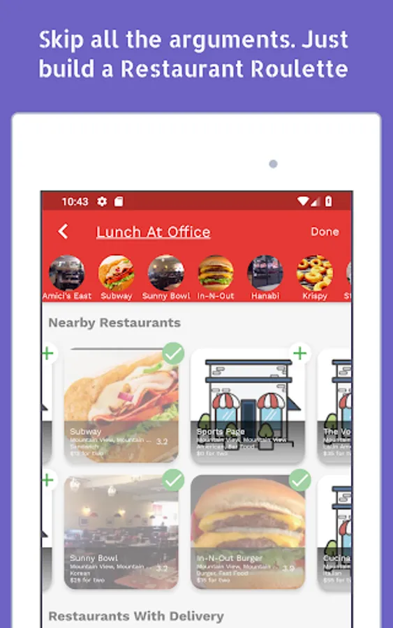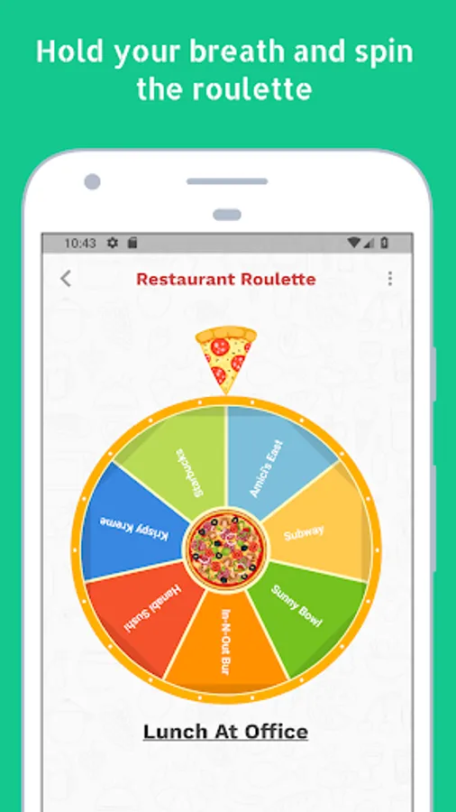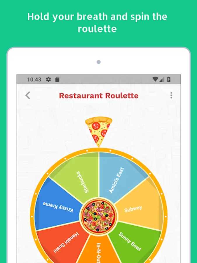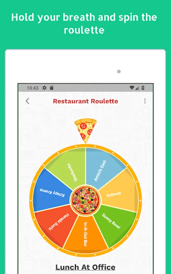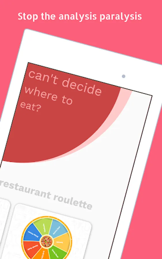 Feeling hungry but can't decide where to eat? Spin a wheel of restaurants and stop all the analysis paralysis.