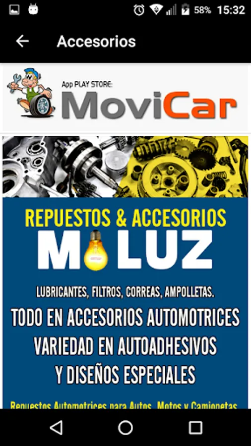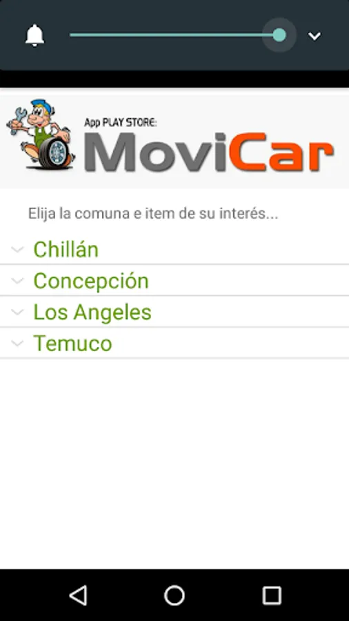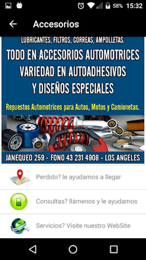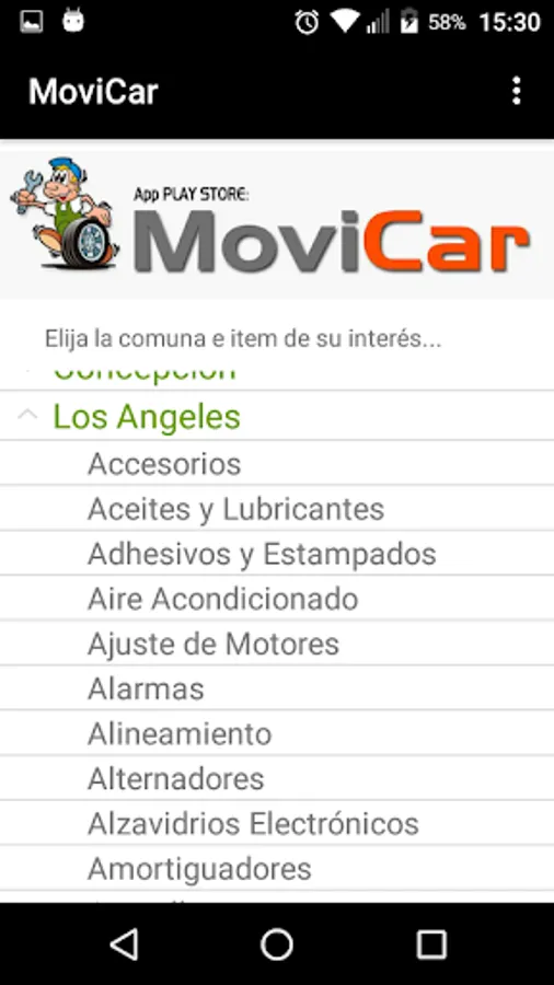 Free Android App containing local selling spare parts and / or provide services for all types of vehicles throughout the Biobio region.