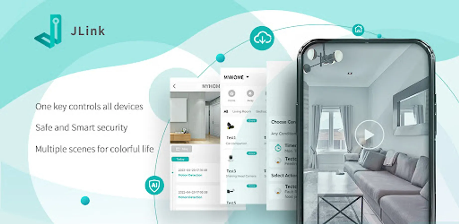 JLink can control all hardware devices, also can connect a third-party smart speaker . Provide users with an overall solution for intelligent life, realize the interconnection between intelligent hardware, personalized and customized intelligent scenes. Share smart devices with family and friends, so you can always control these devices everywhere and real time control the status of devices at home .