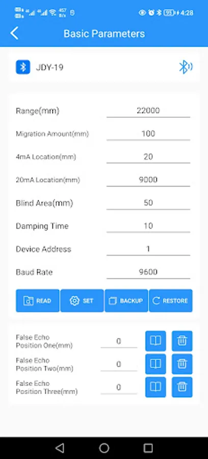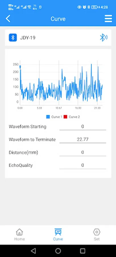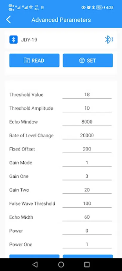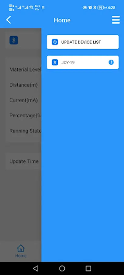RadarMe is an app that cooperates with hardware to measure material level. It communicates with hardware devices through Bluetooth, and controls the hardware devices to work by setting and reading the parameters of hardware devices.