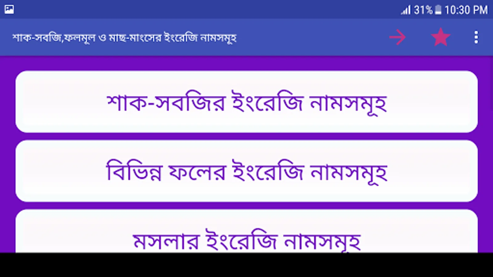 আমরা অনেকেই অনেক সহজ কিছুর ইংরেজি নাম জানি না। তাই এসব সাধারণ জিনিসের ইংরেজি নাম জানতে চাইলে আপনার জন্য রয়েছে আমাদের অ্যাপসটি।আপনাদের মতামত জানাতে ভুলবেন না। ভুল হলে ক্ষমা করবেন।