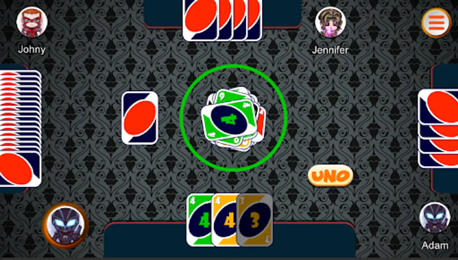 Uno-Cards game has awesome 3D graphics, easy controls, it is fast paced, extremely addictive and fun to play.It's fun when you play with your friends Play multiplayer or single player with lots of features.Play the most engaging card game Uno - Cards.This game brings you and your avatar to the best realistic card experience on your Android.