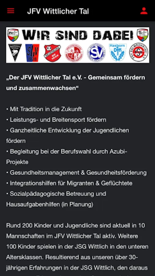 Around 200 children and young people are currently active in 10 teams in the JFV Wittlicher Tal. Another 100 children play in the JSGs of the parent clubs in the lower age groups. Under the motto "Promote together and grow together", the sponsoring associations Wittlich, Lüxem, Minderlittgen-Hupperath, Neuerburg, Zeltingen, Hasborn and Salmrohr recognized the urgency of the need for action and launched the conceptual and organizational foundation of the JFV in April 2018. Since May 2019 we have been able to win another strong partner with the FSV Salmrohr. In 2020 Rot-Weiss-Wittlich e.V. joined the JFV.