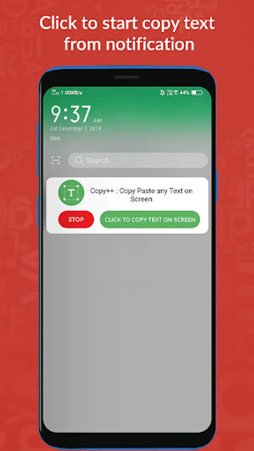 Step1: To copy textual content from screen. Press START on the home screen and you will see a notification of this app.