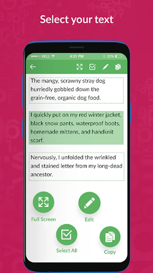 Step4: You will see green boxes on the screen, tap on the boxes whose textual content you want to copy.