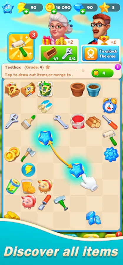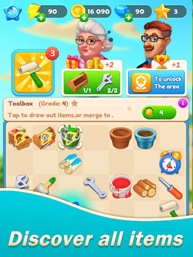 Tools, jewelry and treasure chests, hundreds of items are waiting for you to explore! Satisfy your collecting cravings and each item will provide a reward! In addition, there are many amiable friends who come to complete tasks with you and help you unlock the manor.