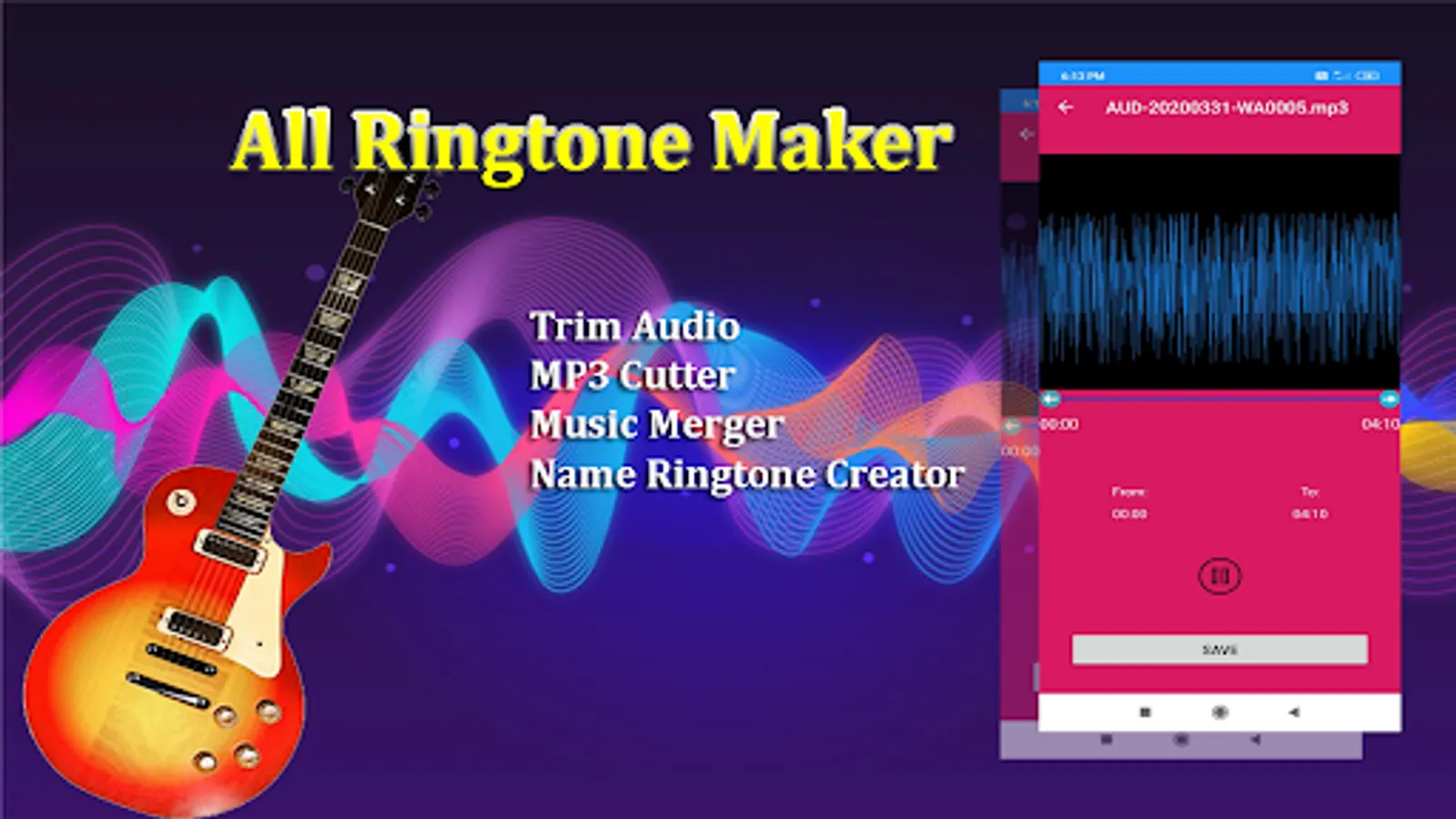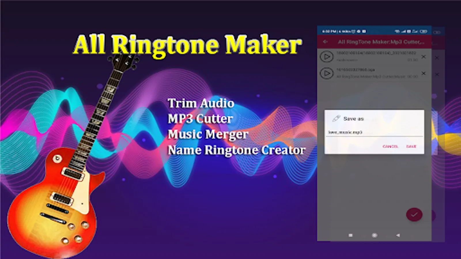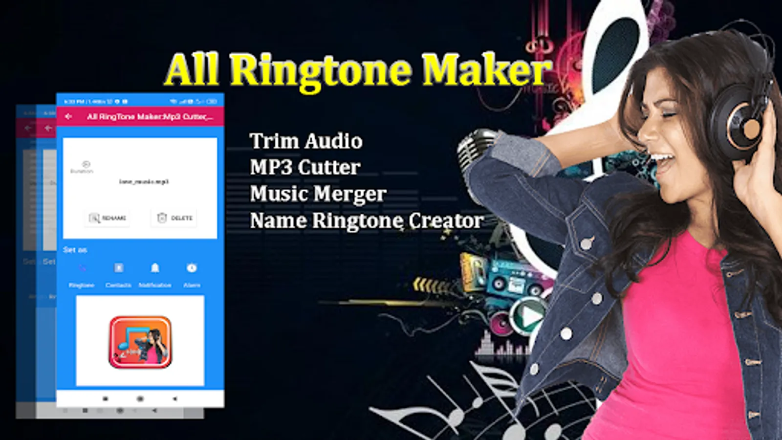 All RingTone Maker:Mp3 Cutter,Music Mixer helps you easily and quickly cut music and make ringtones. With this a powerful Music Editor app, you can cut songs, merge songs, record your own ringtones and manage ringtones. You can use all the professional MP3 Editor Features bellows all in one app: