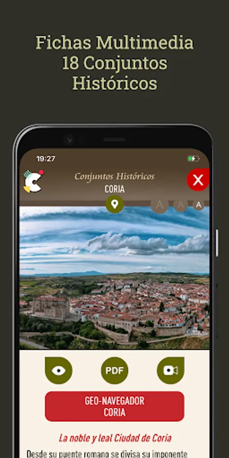 This 100% visual Multimedia Guide will allow you to explore, geolocated, the 18 Historical Ensembles of the province of Cáceres. In each of the destinations you will find an itinerary that you can follow.