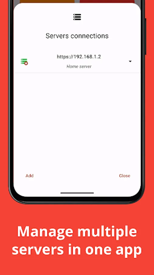 ▶ Add multiple servers to the app, and manage all of them from here.
