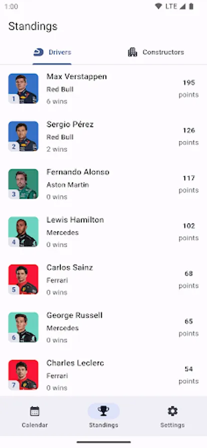 With Formula Racing you can get the latest information about racing sessions, standings and more. All that packed on a beautiful application that follows the latest Material guidelines from Google and supports the Material You theme.