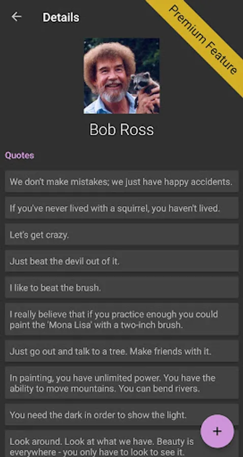 With his wholesome demeanor and sage wisdom, Bob Ross has become nothing short of a cultural icon. Ross Quotes continues his legacy and brightens your day by dropping a happy word from Bob right into your notification tray.