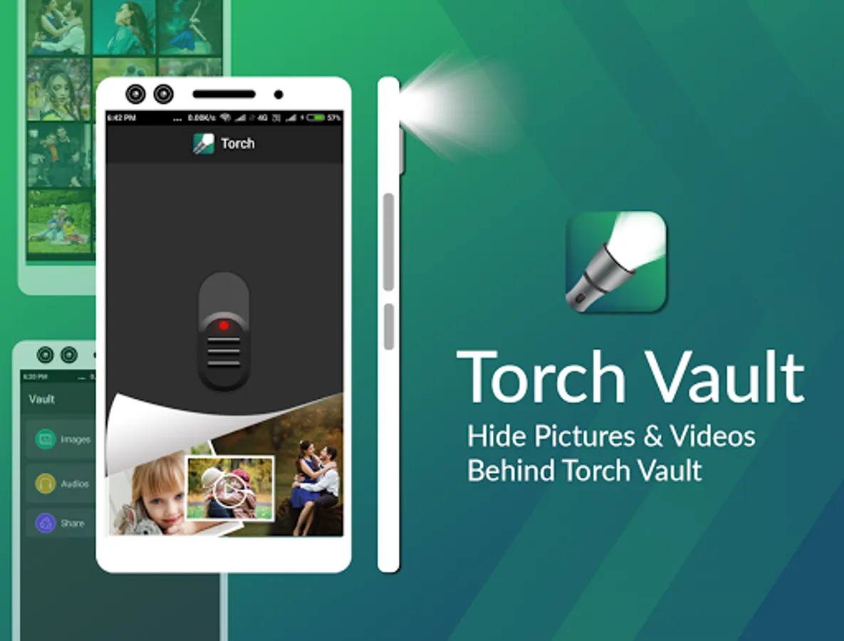 Torch Vault is the Gallery vault app can Hide Photos, Hide Videos and more files, No one can know that you have installed gallery vault app, Its looks like a Simple Torch app, But you can hide and lock your personal files after you long press on Torch title and Entering a Secret Pincode.